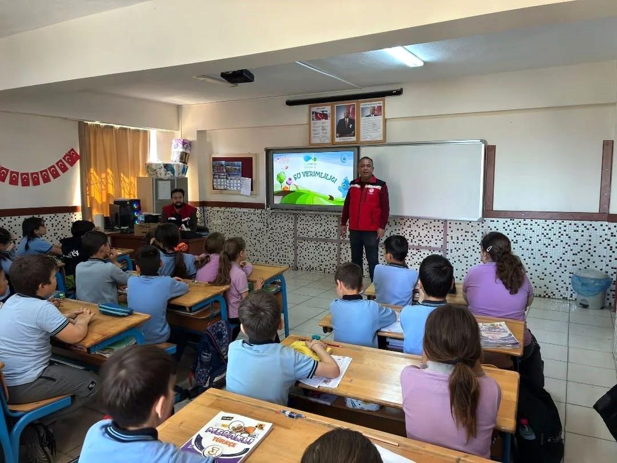 Su verimliliği seferberliği çerçevesinde eğitimlerine devam eden Aydın İl Tarım ve Orman Müdürlüğü ekipleri, ilkokul öğrencilerini verimli su kullanımı konularında bilgilendirdi.