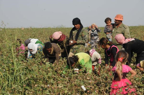 Ülkelerinden kaçan ve Akçakale Sınır Kapısı’ndan geçerek Türkiye’ye gelen Suriyelilerin bazıları, yakınlarının yanına veya çadır kentlere giderken, bazıları ise geçimlerini tarım işçiliği yaparak sağlıyor. Suriye’den gelen 70 kişi, Akçakale’nin Aşağıderen Köyü’ne bağlı Zınnar mezrasında Cedan Çiftçi’ye ait tarlada pamuk toplayarak geçimini sağlıyor.