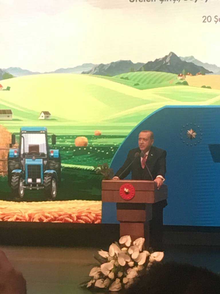 Erdoğan’ın konuşmasından bazı notlar:”Türkiye’nin en başarılı olduğu alanlardan biri de tarım ve hayvancılıktır. Son 15 yılda katedilen mesafeyi en iyi sizler biliyorsunuz. Üreticilerimize son 15 yılda 103 milyar TL nakit destek verdik. 2018’de mazot maliyetinin yarısını biz karşılayacağız.. Türkiye’yi tohum ihraç eden bir ülke konumuna getirdik. 17 milyon dolardan 153 milyon dolara çıktı. Türkiye tarımsal hasılada Avrupa birincisi oldu. Türkiye tarımında net ihracatçı ülke haline geldik.”