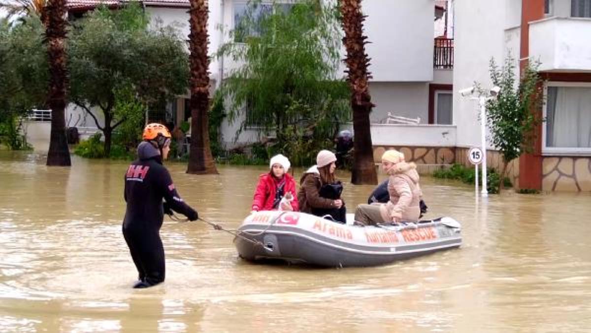 Antalya’nın Manavgat ilçesinde dün geceden itibaren etkili olan sağanak nedeniyle Karpuzçayı Deresi taştı.